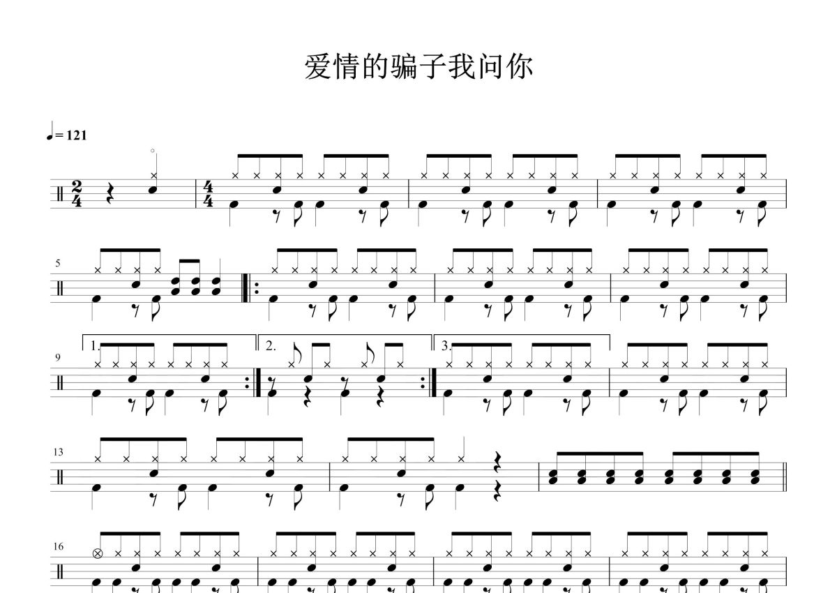 陈小云《爱情的骗子我问你》鼓谱 - 架子鼓谱
