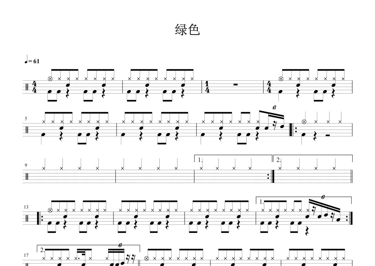 陈雪凝《绿色》鼓谱 - 架子鼓谱