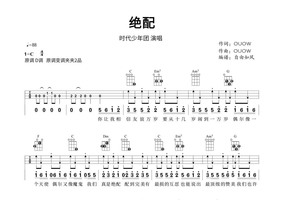 时代少年团《绝配》尤克里里谱 - C调尤克里里谱