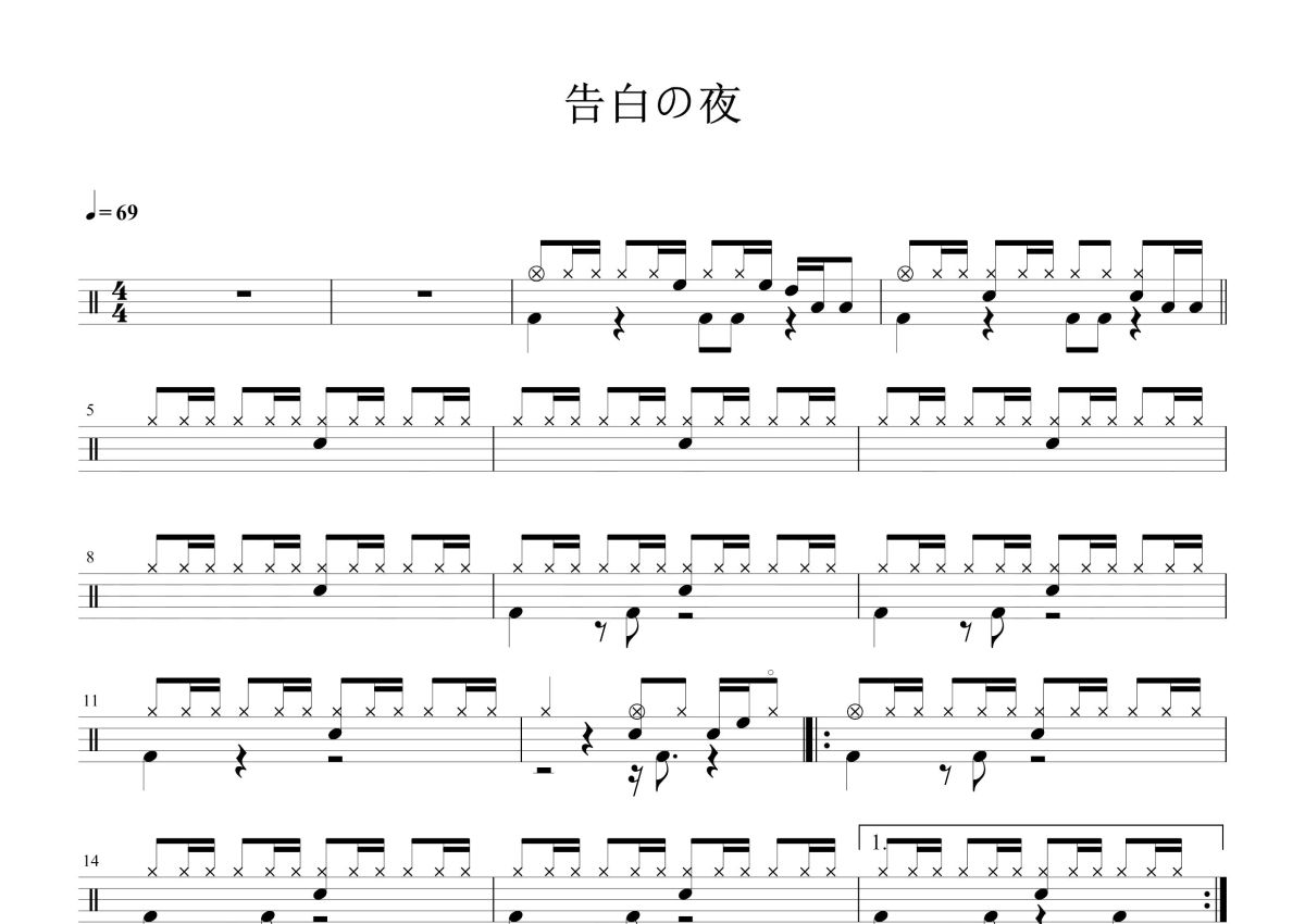 Ayasa(岛村绚沙)《告白夜》鼓谱 - 架子鼓谱