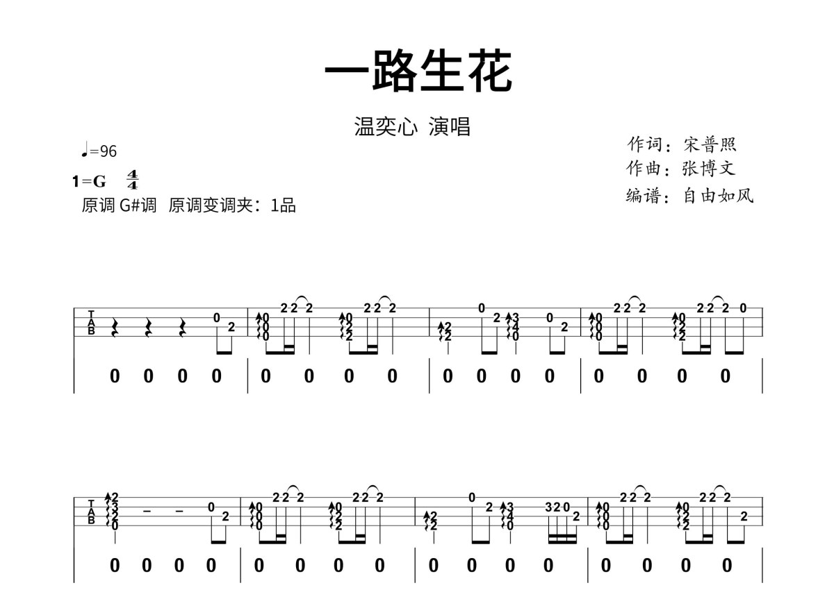 温奕心《一路生花》尤克里里谱 - G调尤克里里谱