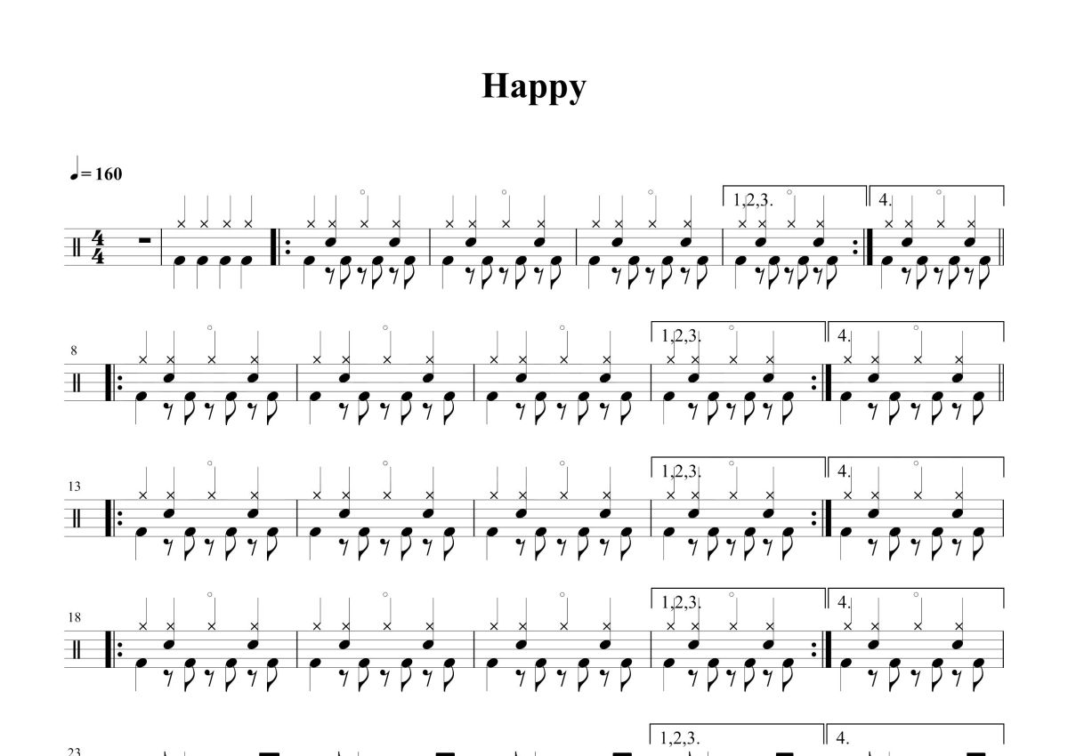 《Happy》是法瑞尔·威廉姆斯(Pharrell Williams)演唱的一首歌曲,这份鼓谱共有一张高清图谱,图谱由 @打鼓谱 编配上传,图谱使用五线谱编配,使用这份Happy架子鼓谱,你将能够轻松地敲打出这首法瑞尔·威廉姆斯(Pharrell Williams)的Happy,快来尝试吧。《Happy》是法瑞尔·威廉姆斯演唱的一首歌曲, 由法瑞尔·威廉姆斯负责词曲创作。该曲作为电影《神偷奶爸2》的主题曲于2013年6月18日随电影原声专辑发行,于2013年11月21日作为单曲发行,歌曲后被收录在法瑞尔·威廉姆斯于2014年3月3日发行的第二张录音室专辑《G I R L》中。《Happy》拿下美国公告牌单曲榜冠军,并连续蝉联10周 [3] 。2015年,法瑞尔·威廉姆斯凭借该曲获得第57届格莱美奖“最佳流行独唱”和“最佳音乐视频”奖 。