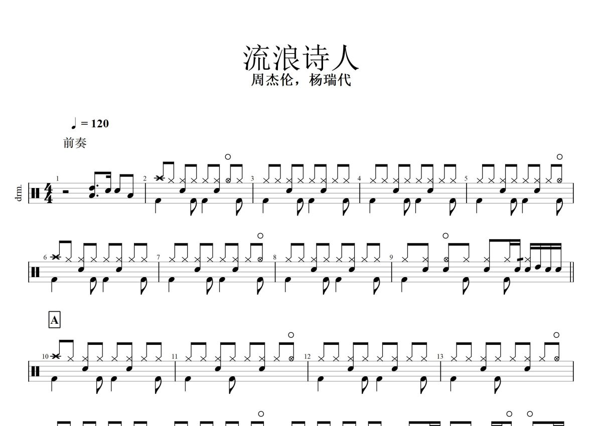 周杰伦/杨瑞代《流浪诗人》鼓谱 - 架子鼓谱