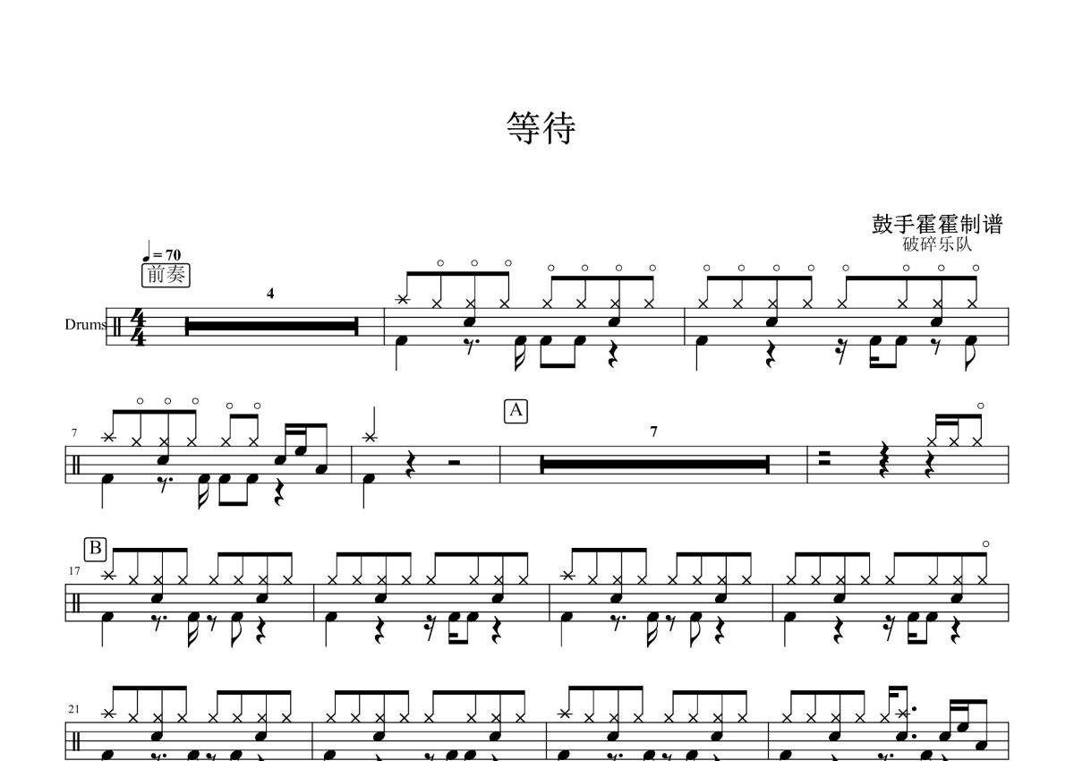 破碎乐队《等待》鼓谱 - 架子鼓谱