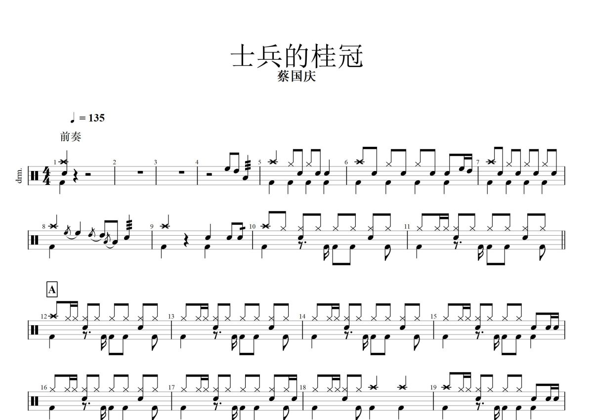 蔡国庆《士兵的桂冠》鼓谱 - 架子鼓谱