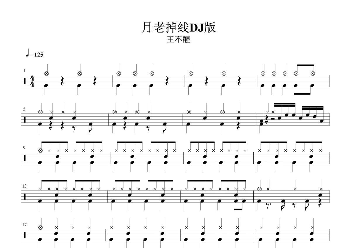 王不醒《月老掉线》鼓谱 - 架子鼓谱 - DJ版