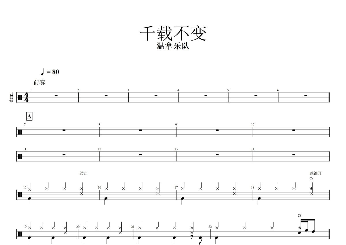 温拿乐队《千载不变》鼓谱 - 架子鼓谱