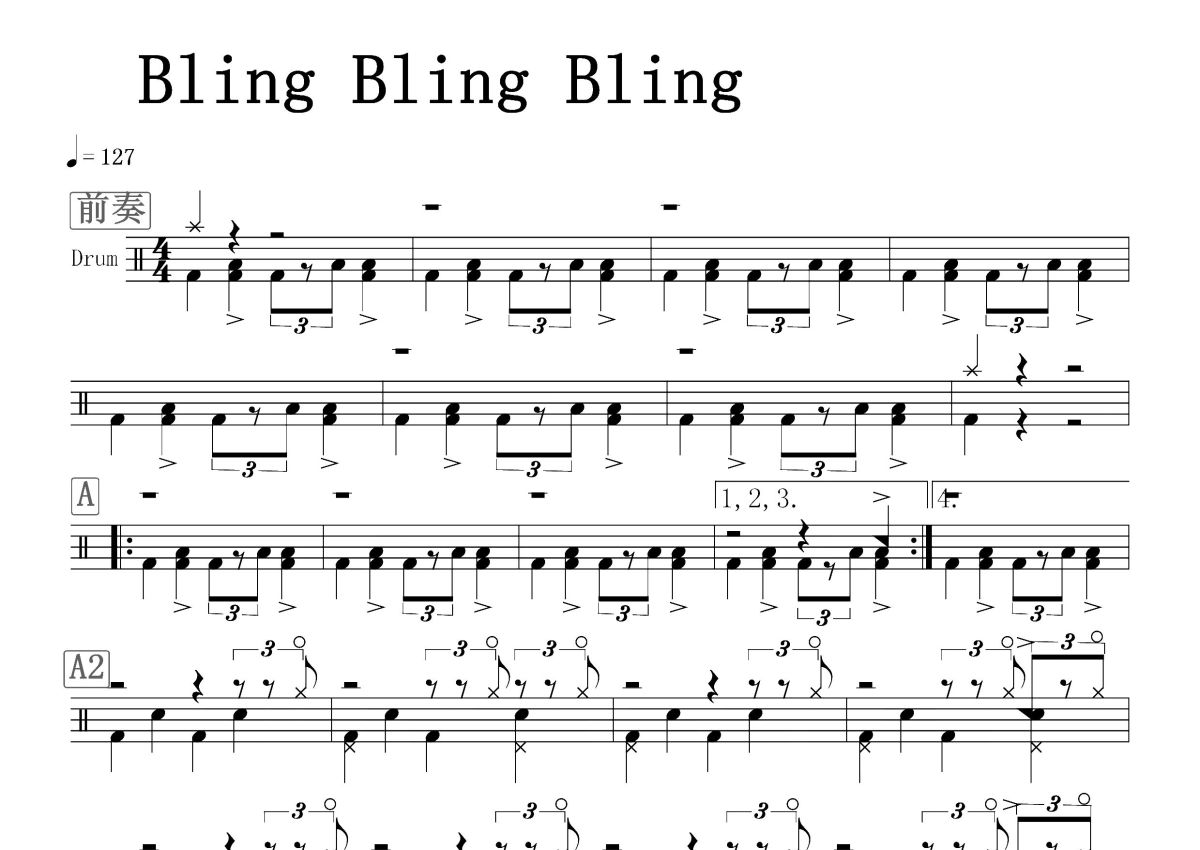 后海大鲨鱼《Bling Bling Bling》鼓谱 - 架子鼓谱