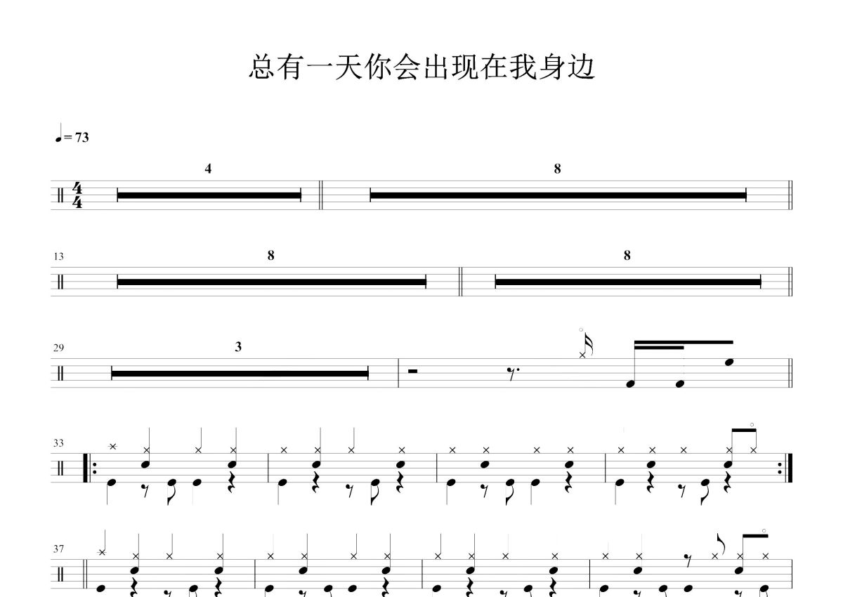 《总有一天你会出现在我身边》是棱镜乐队演唱的一首歌曲,这份鼓谱共有一张高清图谱,图谱由 @打鼓谱 编配上传,图谱使用五线谱编配,使用这份总有一天你会出现在我身边架子鼓谱,你将能够轻松地敲打出这首棱镜乐队的总有一天你会出现在我身边,快来尝试吧。《总有一天你会出现在我身边》是棱镜演唱,陈恒冠作曲的一首歌曲,收录于2018年10月6日发行的专辑《一次有预谋的初次相遇》中。