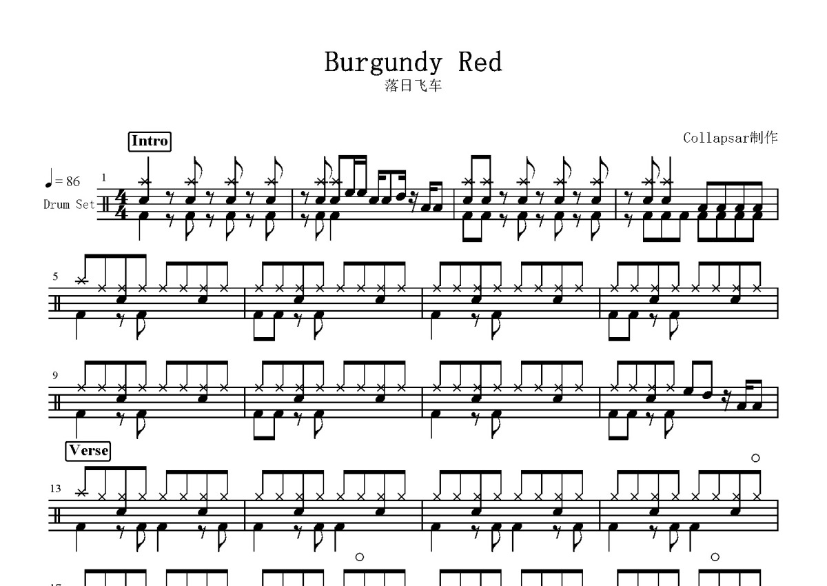 落日飞车《Burgundy Red》鼓谱 - 架子鼓谱