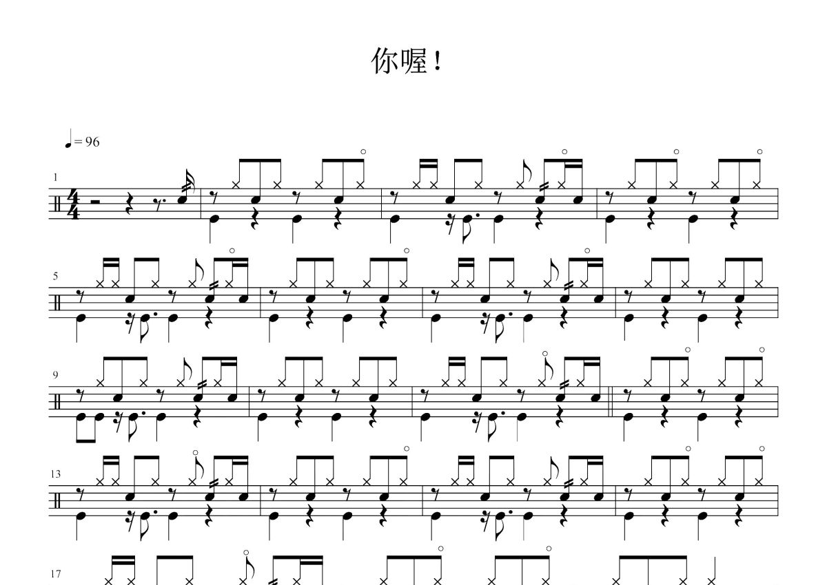 《你喔!》是苏打绿演唱的一首歌曲,这份鼓谱共有三张高清图谱,图谱由 @打鼓谱 编配上传,图谱使用五线谱编配,使用这份你喔!架子鼓谱,你将能够轻松地敲打出这首苏打绿的你喔!,快来尝试吧。《你喔》是苏打绿演唱并作词、作曲的歌曲,收录在专辑《孩子》中。