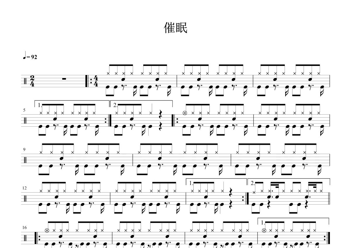 《催眠》是王菲演唱的一首歌曲,这份鼓谱共有两张高清图谱,图谱由 @打鼓谱 编配上传,图谱使用五线谱编配,使用这份催眠架子鼓谱,你将能够轻松地敲打出这首王菲的催眠,快来尝试吧。《催眠》是王菲演唱的一首歌曲,最早收录在她1999年9月发行的国语专辑《只爱陌生人》中。作词是林夕,作曲郭亮。