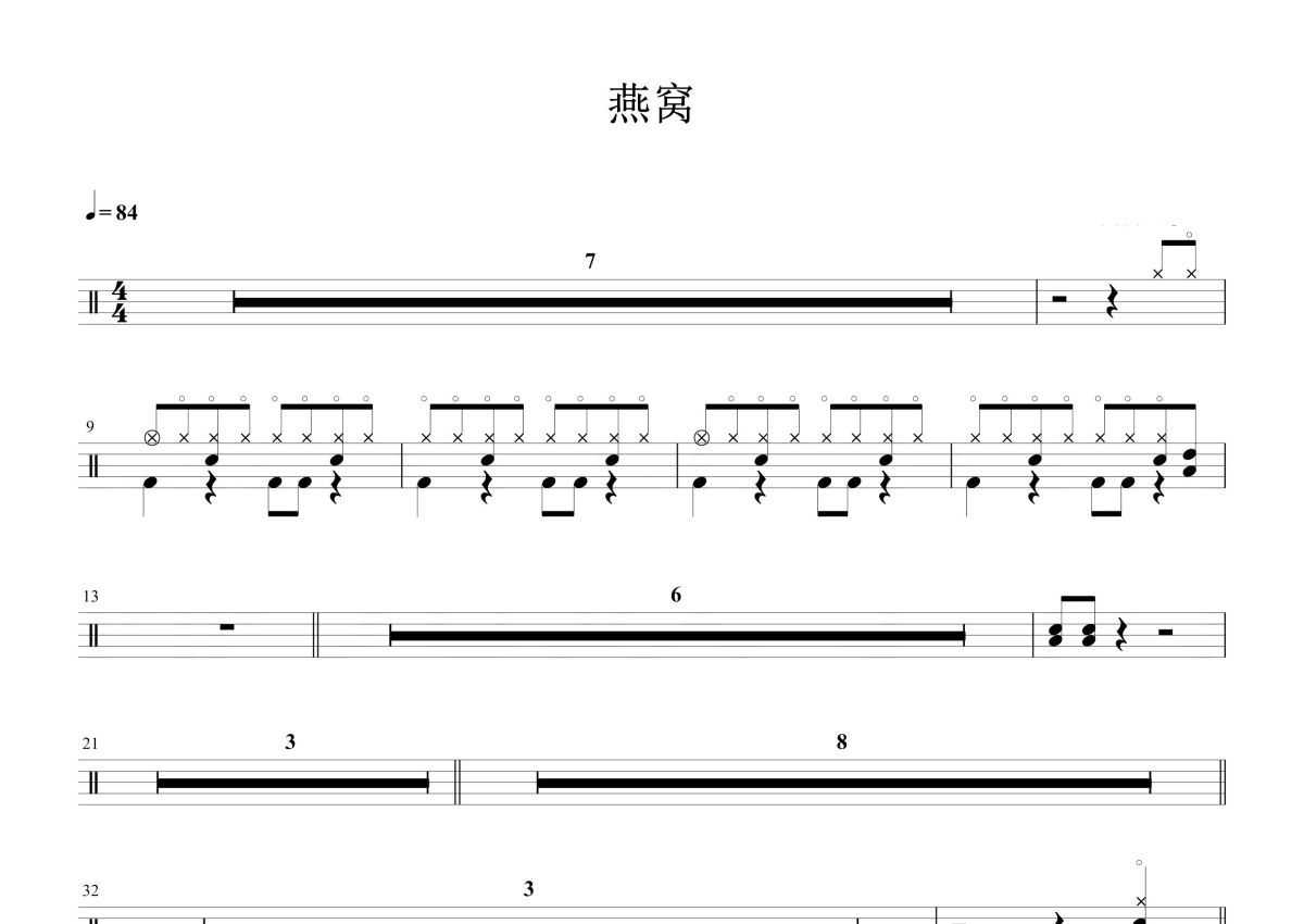 吴青峰《燕窝》鼓谱 - 架子鼓谱