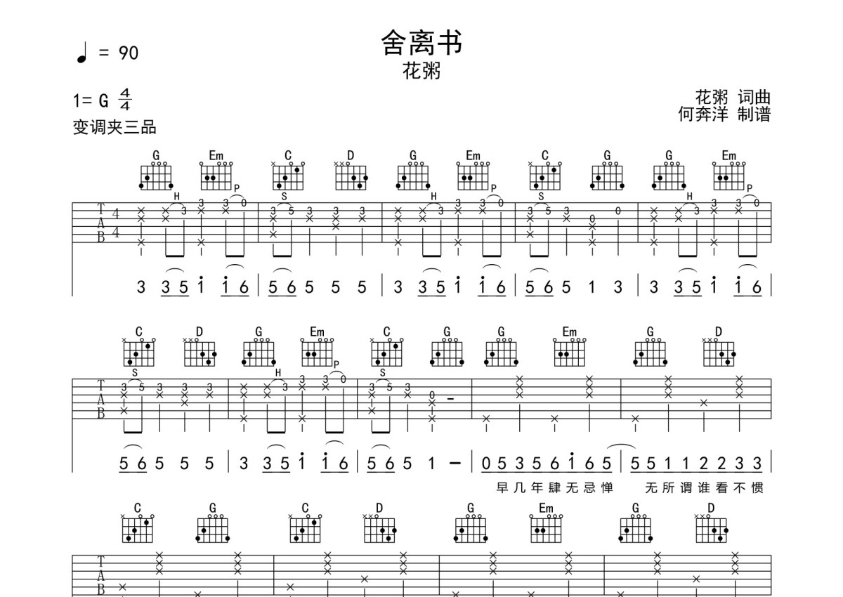 花粥《舍离书》吉他谱 - G调弹唱六线谱