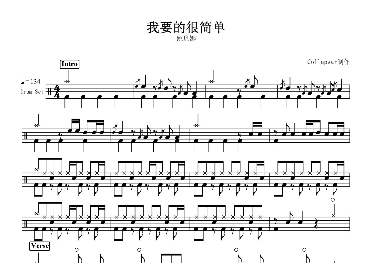 姚贝娜《我要的很简单》鼓谱 - 架子鼓谱