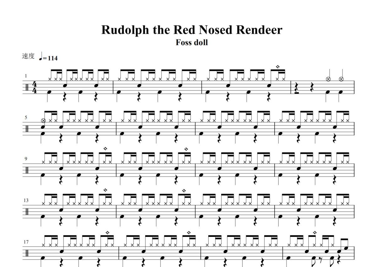 《Rudolph the Red Nosed Reindeer》是The Cadillacs演唱的一首歌曲,这份鼓谱共有三张高清图谱,图谱由 @打鼓谱 编配上传,图谱使用五线谱编配,使用这份Rudolph the Red Nosed Reindeer架子鼓谱,你将能够轻松地敲打出这首The Cadillacs的Rudolph the Red Nosed Reindeer,快来尝试吧。《Rudolph the Red Nosed Reindeer》是The Cadillacs演唱歌曲,收录于2019年9月27日发行的专辑《More Christmas Songs》中 。