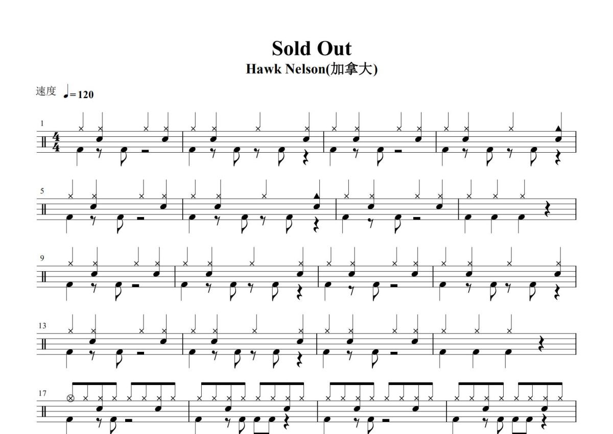 Hawk Nelson《SOLD OUT》鼓谱 - 架子鼓谱