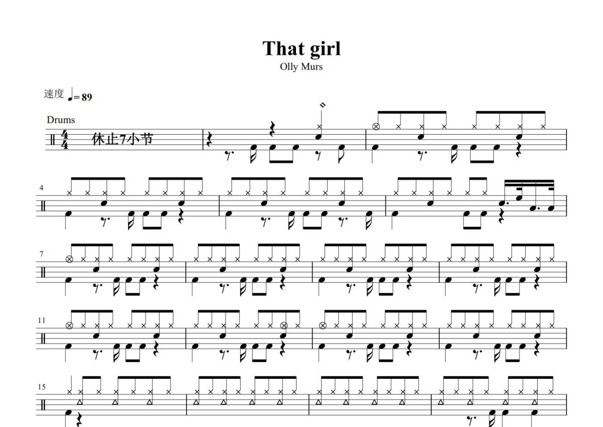 《That Girl》是Olly Murs(奥利·莫尔斯)演唱的一首歌曲,这份鼓谱共有两张高清图谱,图谱由 @打鼓谱 编配上传,图谱使用五线谱编配,使用这份That Girl架子鼓谱,你将能够轻松地敲打出这首Olly Murs(奥利·莫尔斯)的That Girl,快来尝试吧。《That Girl》是由Olly Murs(奥利·莫尔斯)演唱,Claude Kelly,Olly Murs,Steve Robson作词作曲的一首歌曲,出自Olly Murs2016年发行的专辑《24 HRS (Deluxe)》。