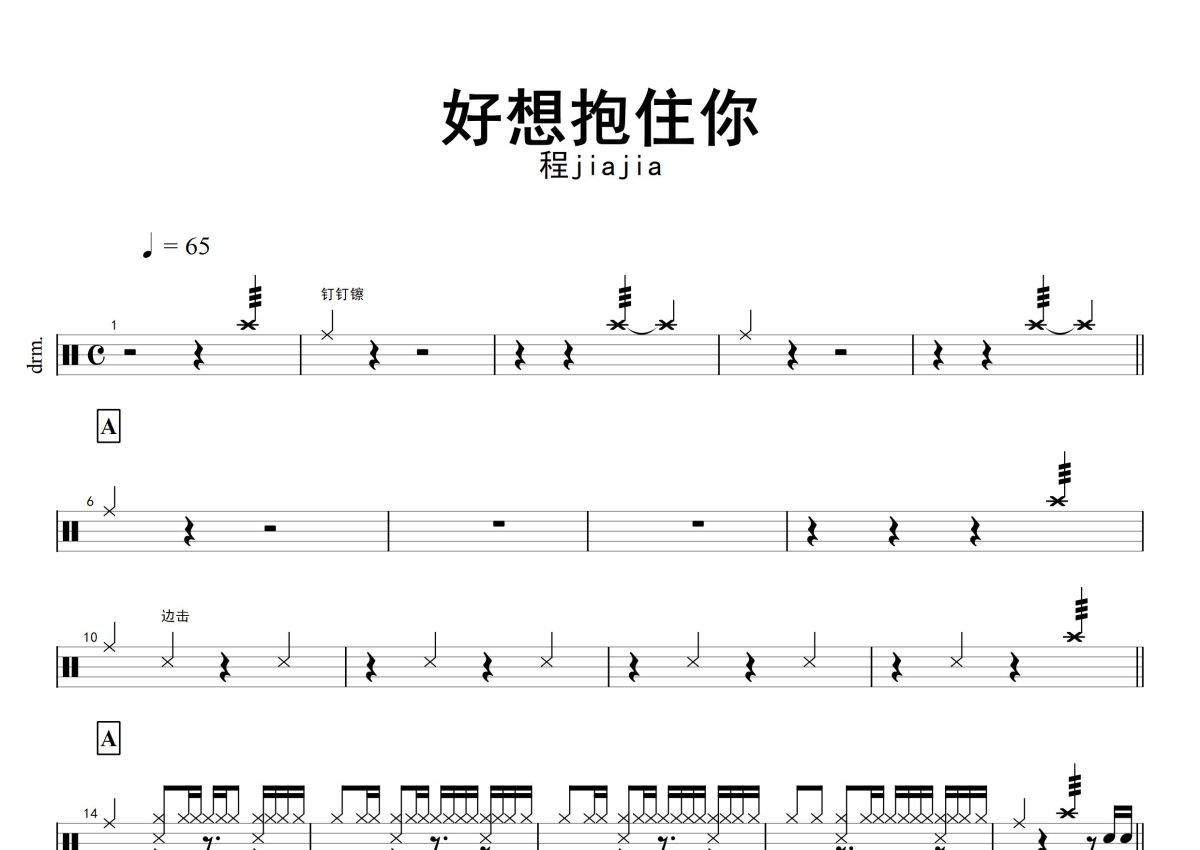 程jiajia《好想抱住你》鼓谱 - 架子鼓谱