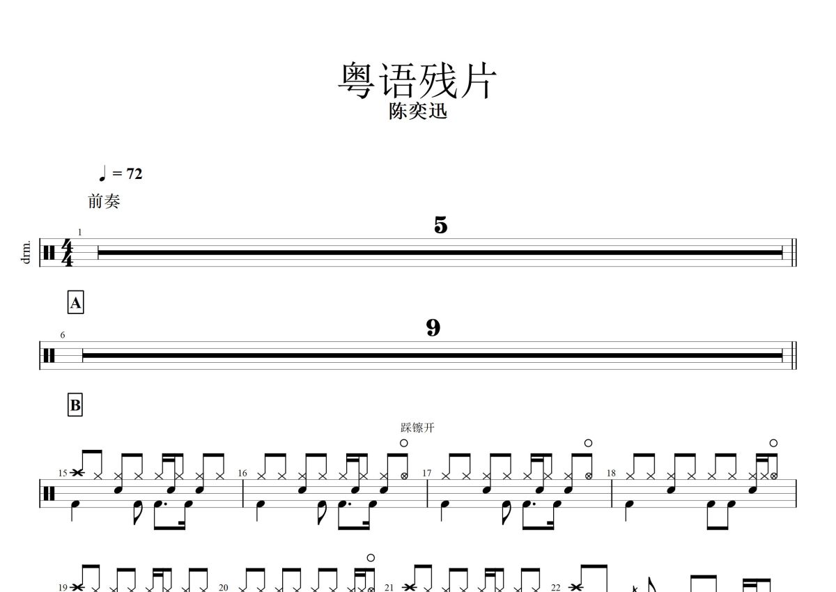陈奕迅《粤语残片》鼓谱 - 架子鼓谱