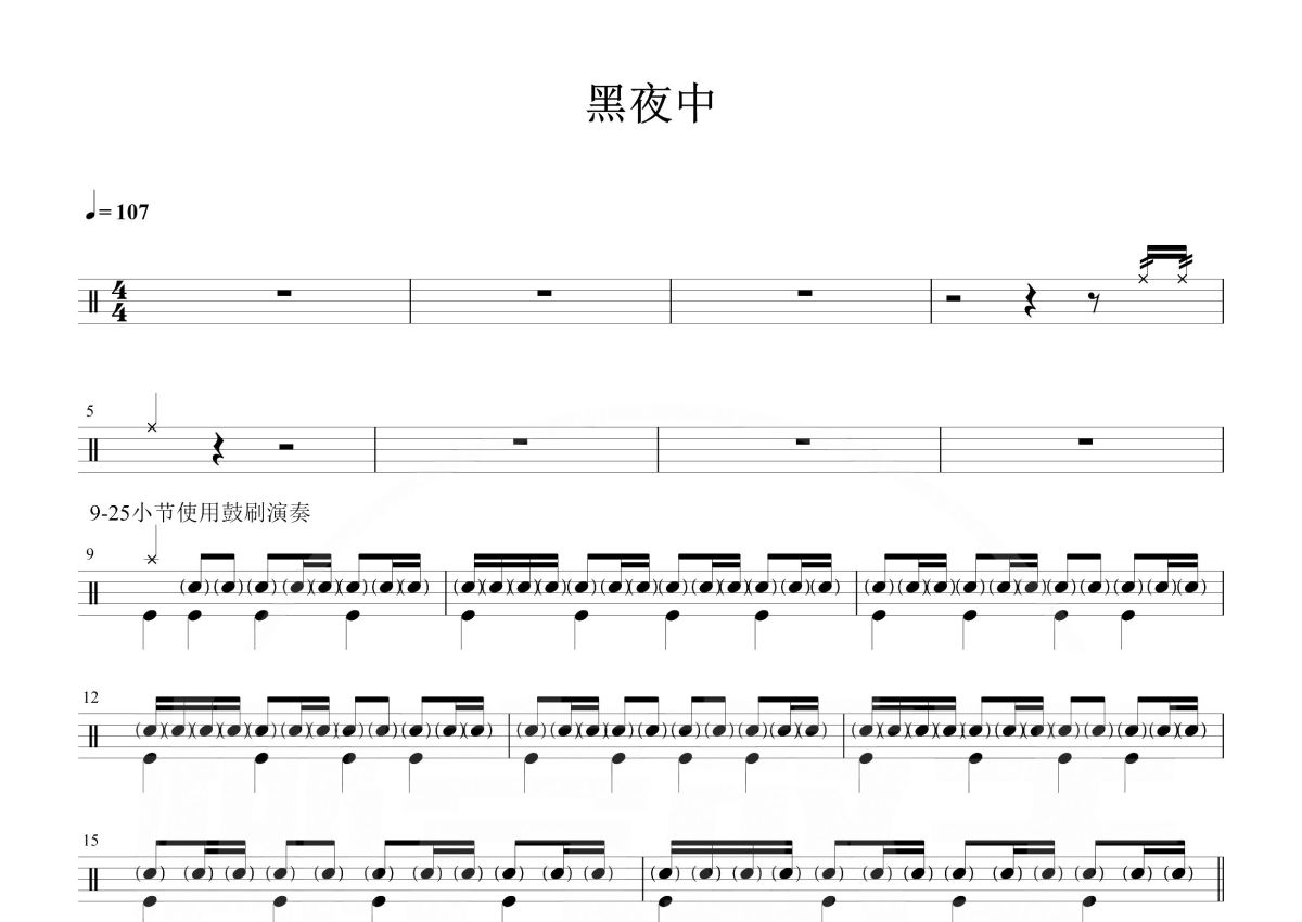 梁博《黑夜中》鼓谱 - 架子鼓谱