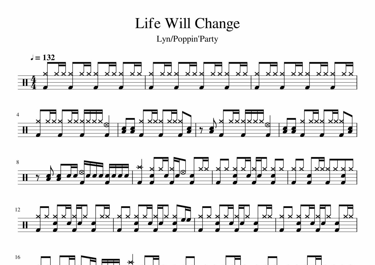 Lyn《Life Will Change》鼓谱 - 架子鼓谱