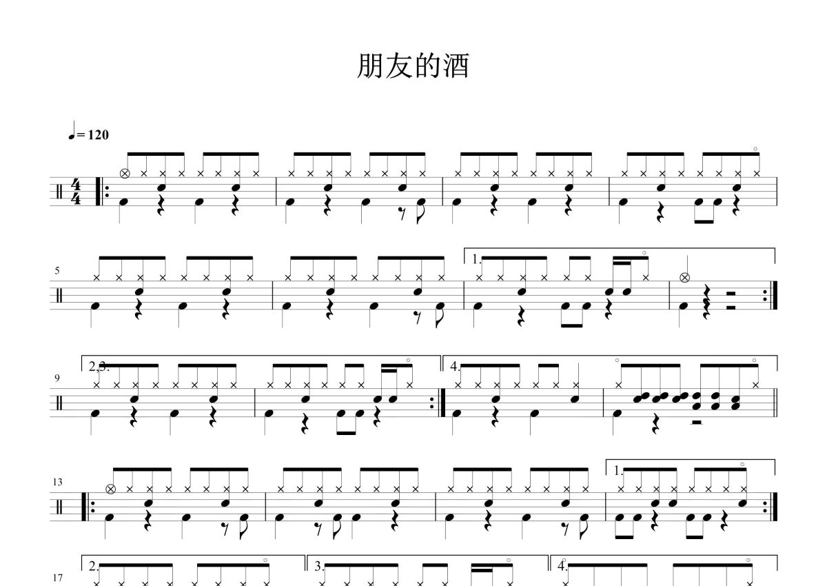 李晓杰《朋友的酒》鼓谱 - 架子鼓谱