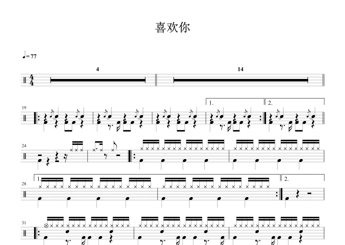 邓紫棋《喜欢你》鼓谱 - 架子鼓谱