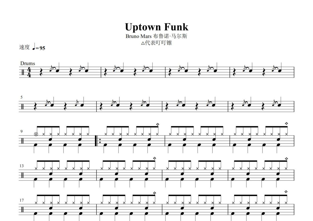 火星哥《Upknow Funk》鼓谱 - 架子鼓谱