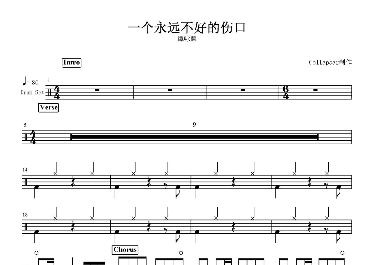 谭咏麟《一个永远不好的伤口》鼓谱 - 架子鼓谱