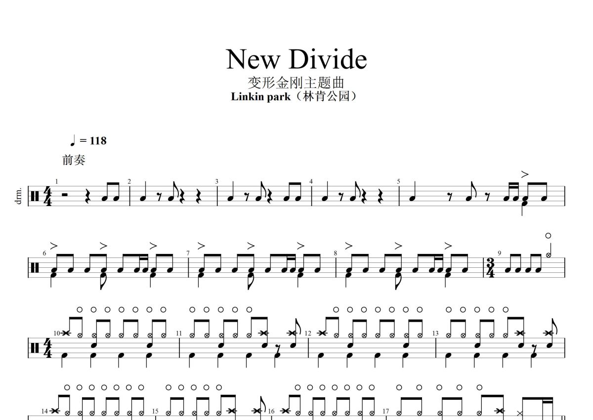 林肯公园(Linkin Park)《New Divide》鼓谱 - 架子鼓谱