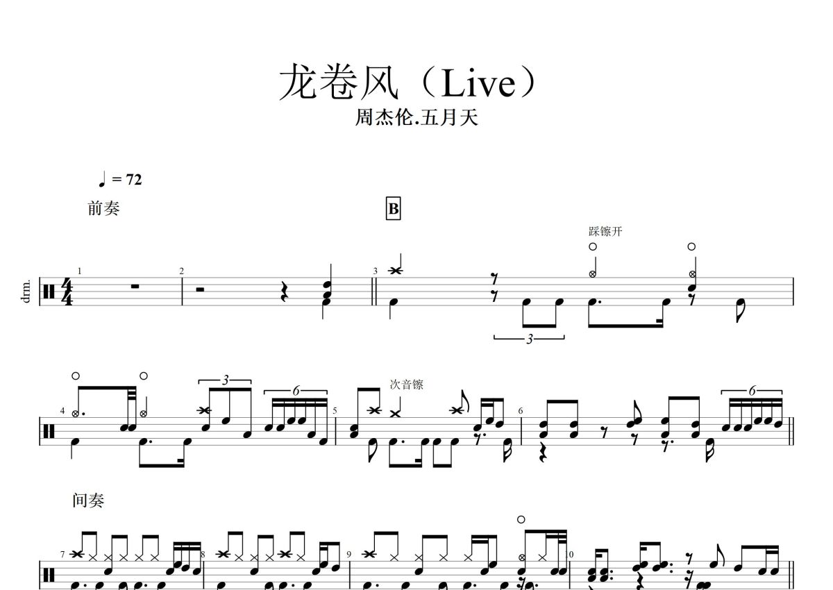 周杰伦/五月天《龙卷风》鼓谱 - 架子鼓谱