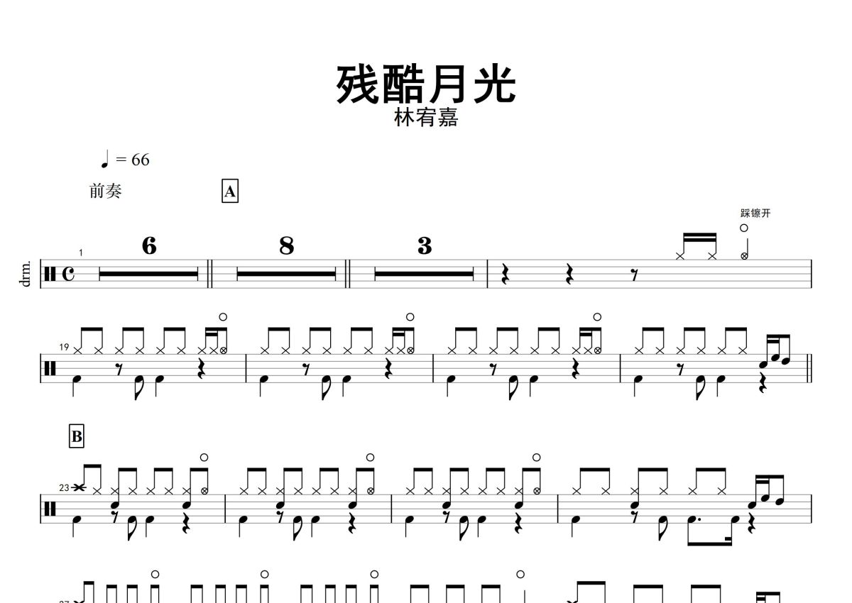 林宥嘉《残酷月光》鼓谱 - 架子鼓谱