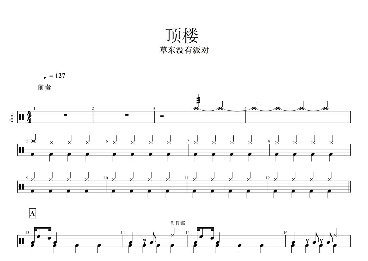 草东没有派对《顶楼》鼓谱 - 架子鼓谱