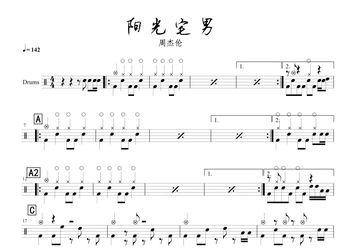 周杰伦《阳光宅男》鼓谱 - 架子鼓谱