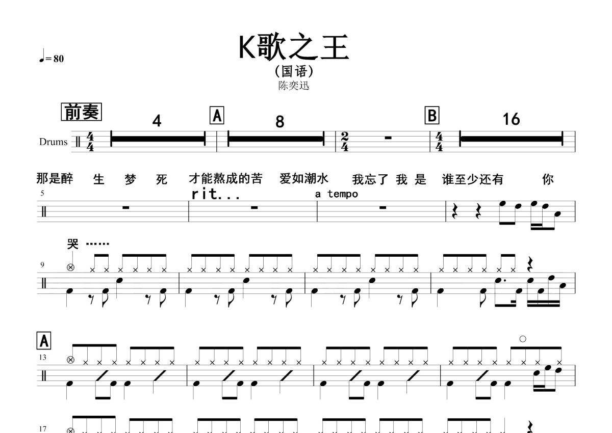 陈奕迅《K歌之王》鼓谱 - 架子鼓谱 - 国语