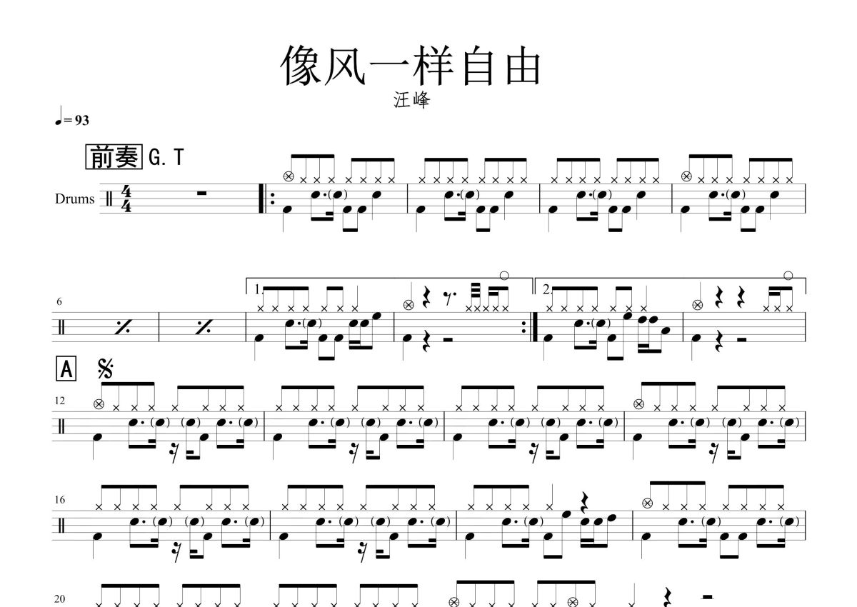 许巍《像风一样自由》鼓谱 - 架子鼓谱