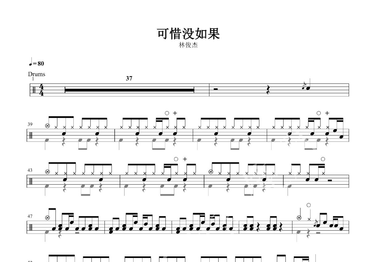 《可惜没如果》是林俊杰演唱的一首歌曲,这份鼓谱共有两张高清图谱,图谱由 @打鼓谱 编配上传,图谱使用五线谱编配,使用这份可惜没如果架子鼓谱,你将能够轻松地敲打出这首林俊杰的可惜没如果,快来尝试吧。《可惜没如果》由林夕作词,蔡政勋编曲,林俊杰作曲并演唱的歌曲,收录在林俊杰第11张个人专辑《新地球GENESIS》中,是专辑的首波抒情主打,同时也是韩剧《杜鹃之巢》的中文主题曲、《对我而言,可爱的她》的中文片尾曲。