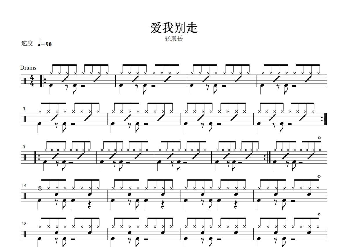 张震岳《爱我别走》鼓谱 - 架子鼓谱