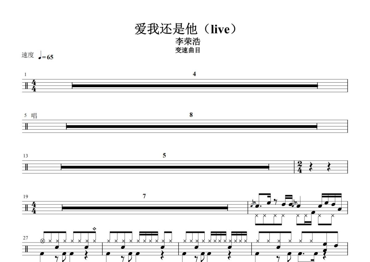 《爱我还是他》是陶喆演唱的一首歌曲,这份鼓谱共有两张高清图谱,图谱由 @打鼓谱 编配上传,图谱使用五线谱编配,使用这份爱我还是他架子鼓谱,你将能够轻松地敲打出这首陶喆的爱我还是他,快来尝试吧。《爱我还是他》是歌手陶喆的一首歌曲,由陶喆、娃娃填词,陶喆作曲,收录在2005年1月21日发行的专辑《太平盛世》中。