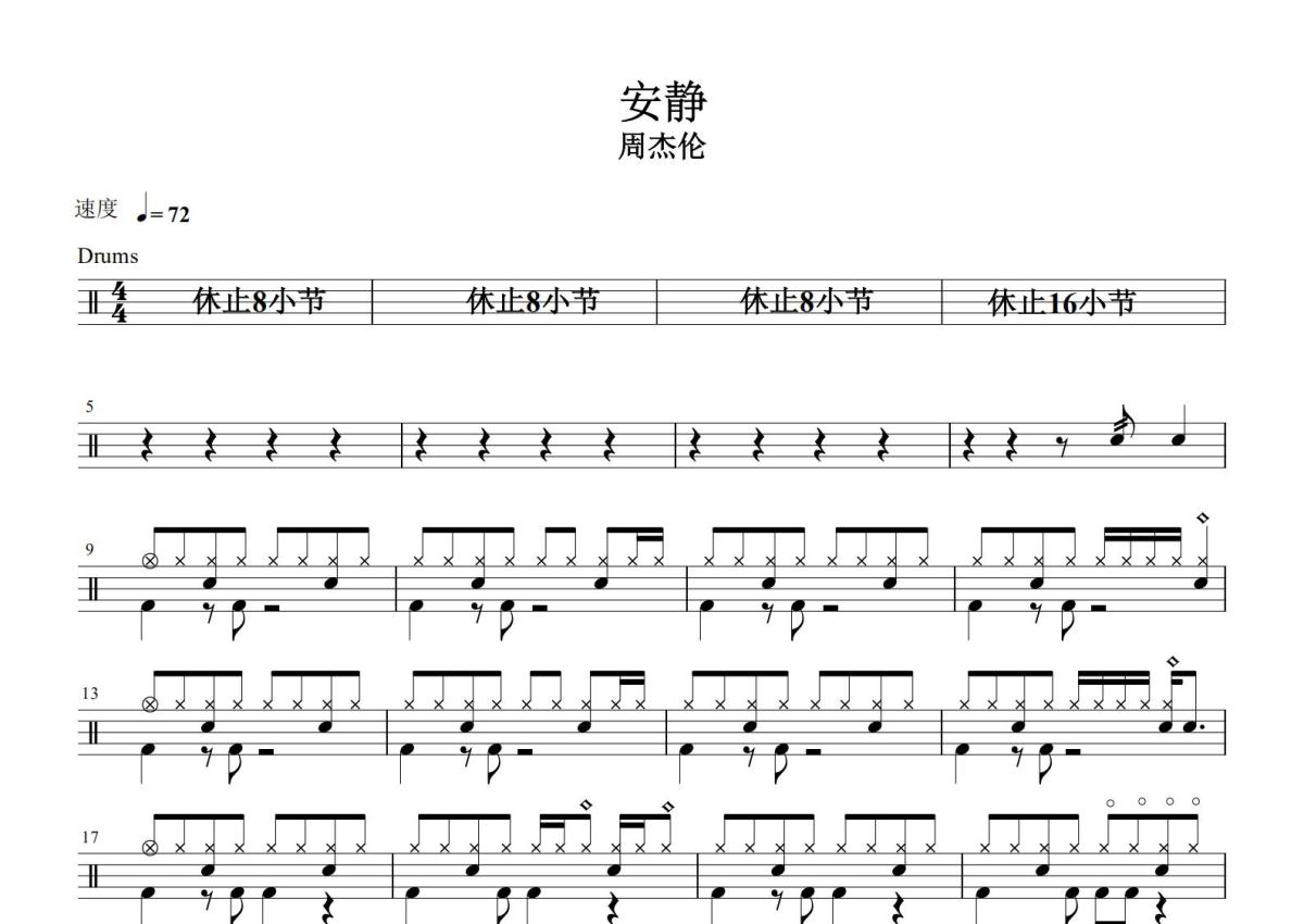 周杰伦《安静》鼓谱 - 架子鼓谱