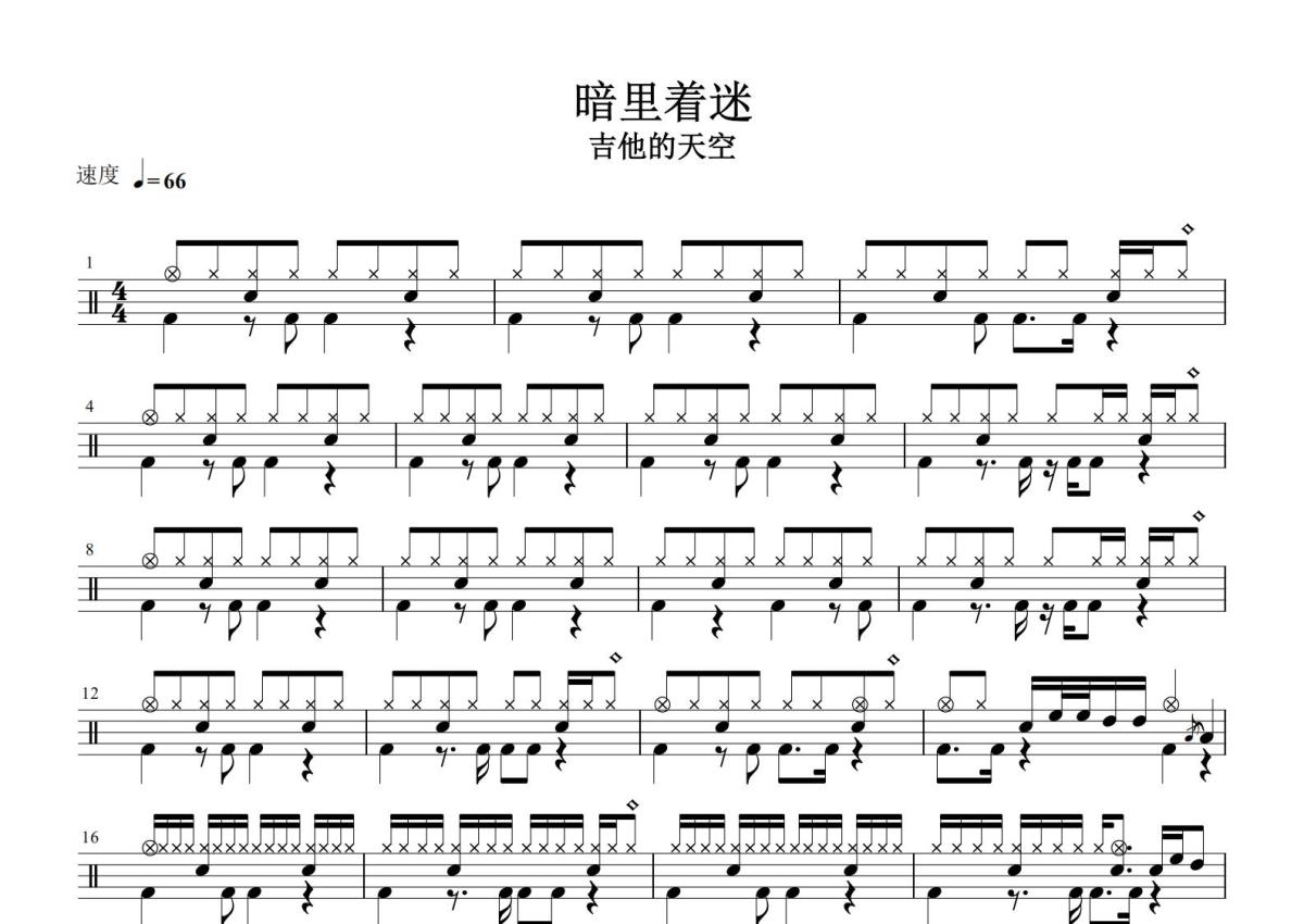 《暗里着迷》是刘德华演唱的一首歌曲,这份鼓谱共有两张高清图谱,图谱由 @打鼓谱 编配上传,图谱使用五线谱编配,使用这份暗里着迷架子鼓谱,你将能够轻松地敲打出这首刘德华的暗里着迷,快来尝试吧。《暗里着迷》是由林振强作词,徐嘉良作曲,刘德华演唱的歌曲,发行于1993年11月1日。