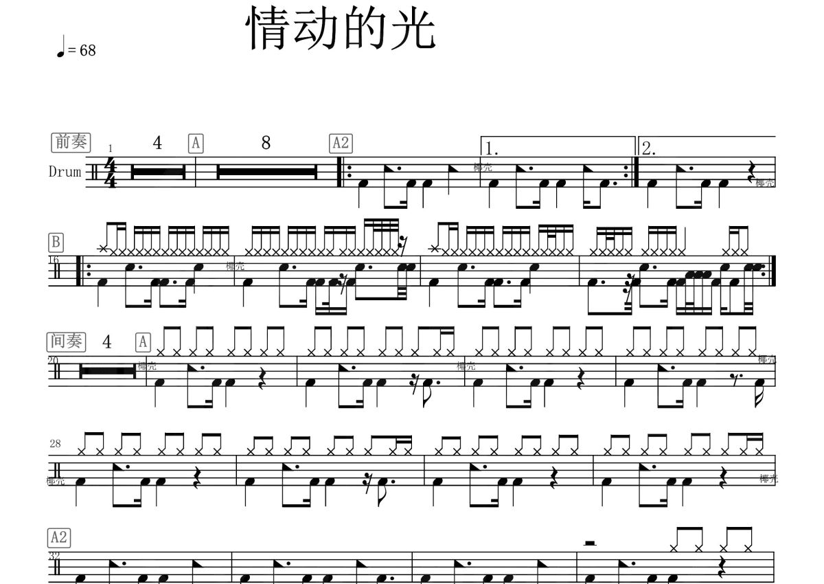 陈雪燃《情动的光》鼓谱 - 架子鼓谱