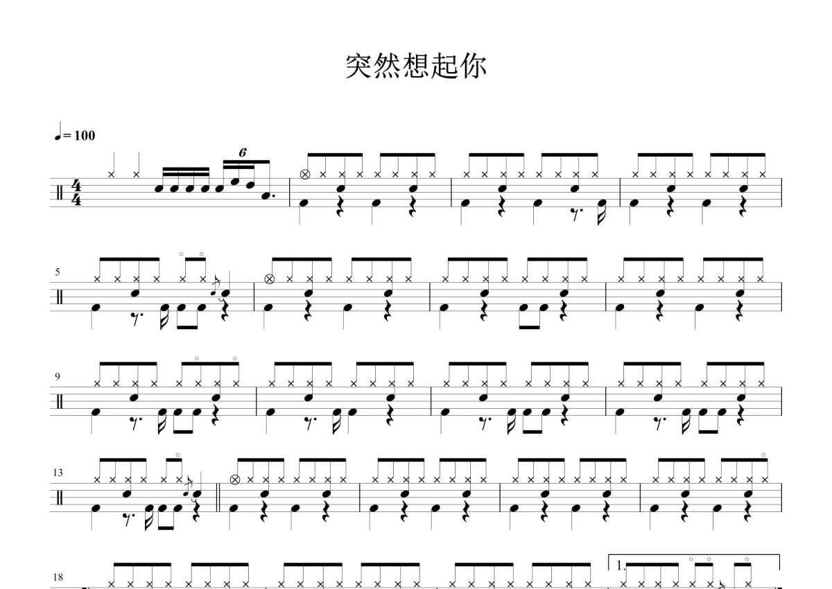 林宥嘉《突然想起你》鼓谱 - 架子鼓谱