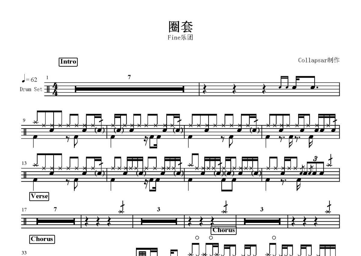 Fine乐团《圈套》鼓谱 - 架子鼓谱