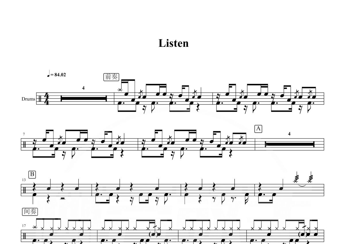 ONE OK ROCK《listen》鼓谱 - 架子鼓谱