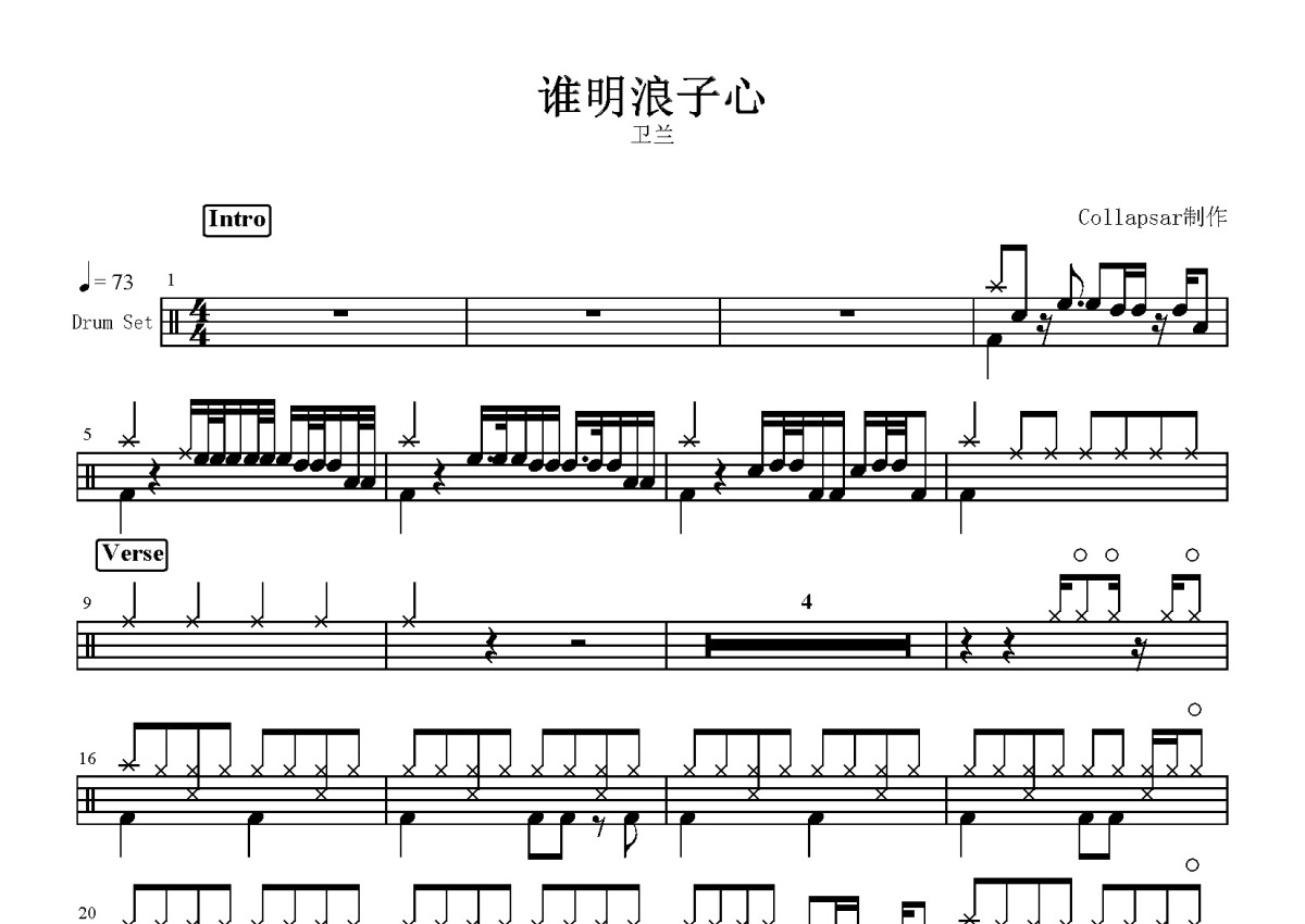 卫兰《谁明浪子心》鼓谱 - 架子鼓谱