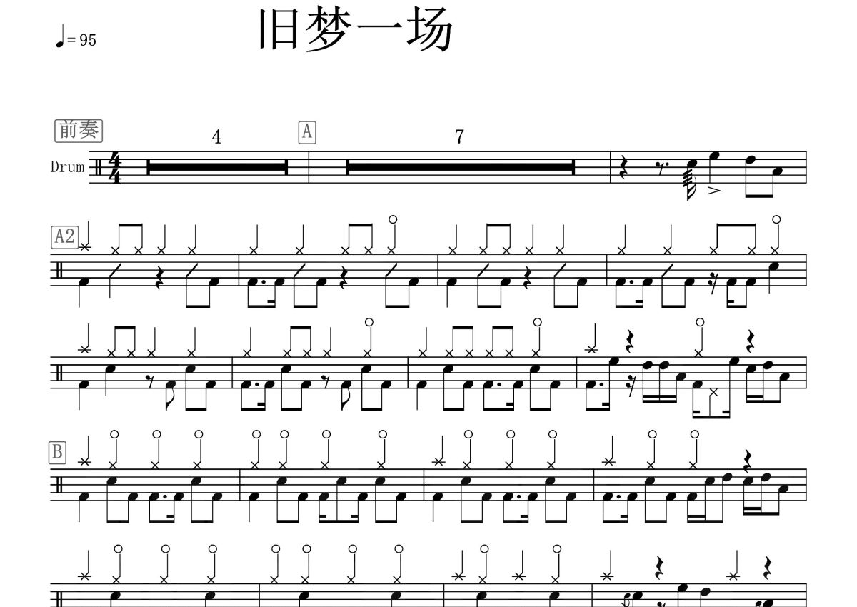《旧梦一场》是阿悠悠演唱的一首歌曲,这份鼓谱共有两张高清图谱,图谱由 @打鼓谱 编配上传,图谱使用五线谱编配,使用这份旧梦一场架子鼓谱,你将能够轻松地敲打出这首阿悠悠的旧梦一场,快来尝试吧。2020年4月22日,发布单曲《旧梦一场》。