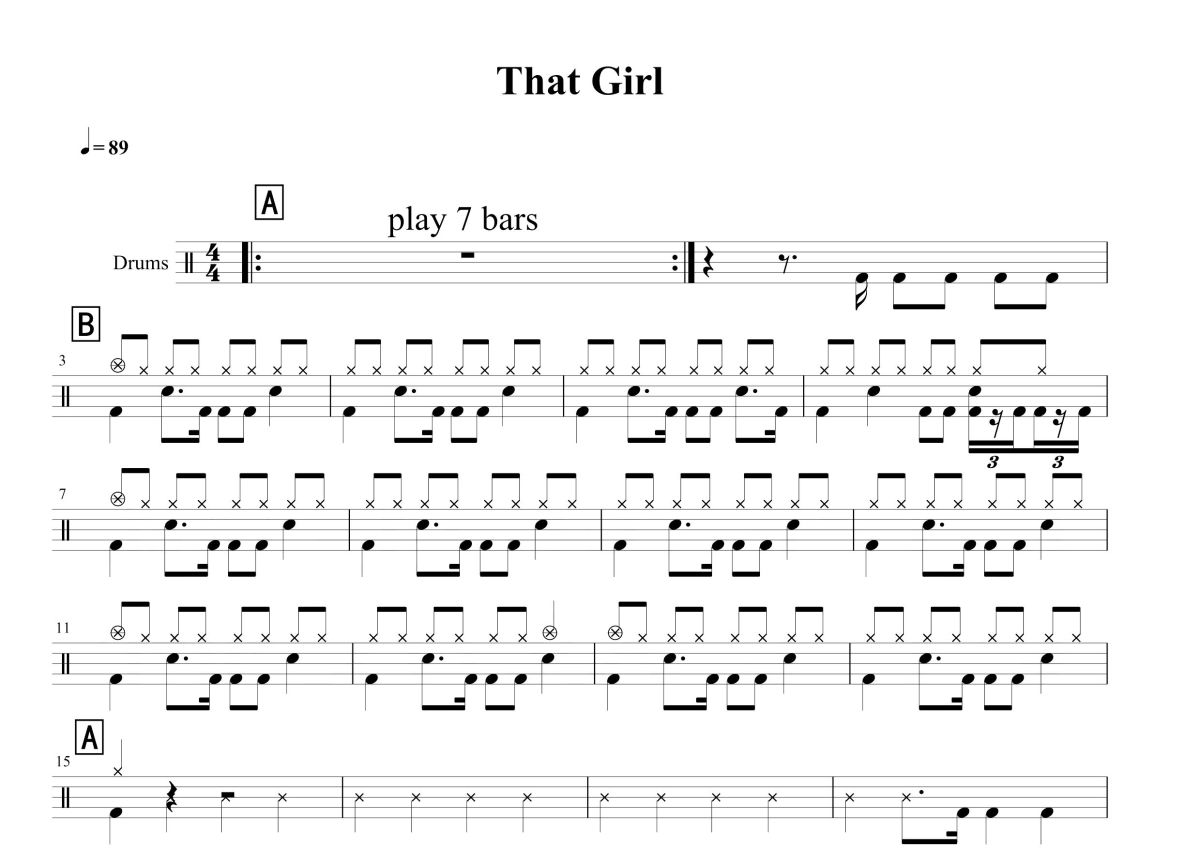 《That Girl》是Olly Murs(奥利·莫尔斯)演唱的一首歌曲,这份鼓谱共有两张高清图谱,图谱由 @打鼓谱 编配上传,图谱使用五线谱编配,使用这份That Girl架子鼓谱,你将能够轻松地敲打出这首Olly Murs(奥利·莫尔斯)的That Girl,快来尝试吧。《That Girl》是由Olly Murs(奥利·莫尔斯)演唱,Claude Kelly,Olly Murs,Steve Robson作词作曲的一首歌曲,出自Olly Murs2016年发行的专辑《24 HRS (Deluxe)》。