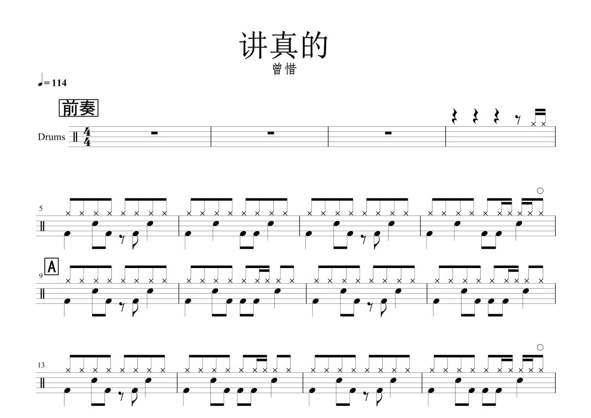 曾惜《讲真的》鼓谱 - 架子鼓谱